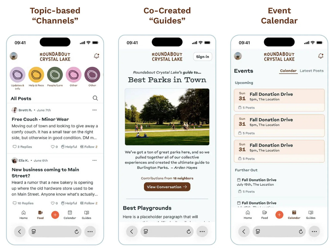 However, the good news is people are starting to become aware of the importance of digital, connective spaces with neighbors. New Public, an organization reimagining digital conversations, has started designing Roundabout as an alternative to digital platforms like Facebook and Nextdoor. The platform’s aim is to connect individuals with immediate neighbors, creating communities of less than 50 people, where individuals can easily access information regarding various local events.
